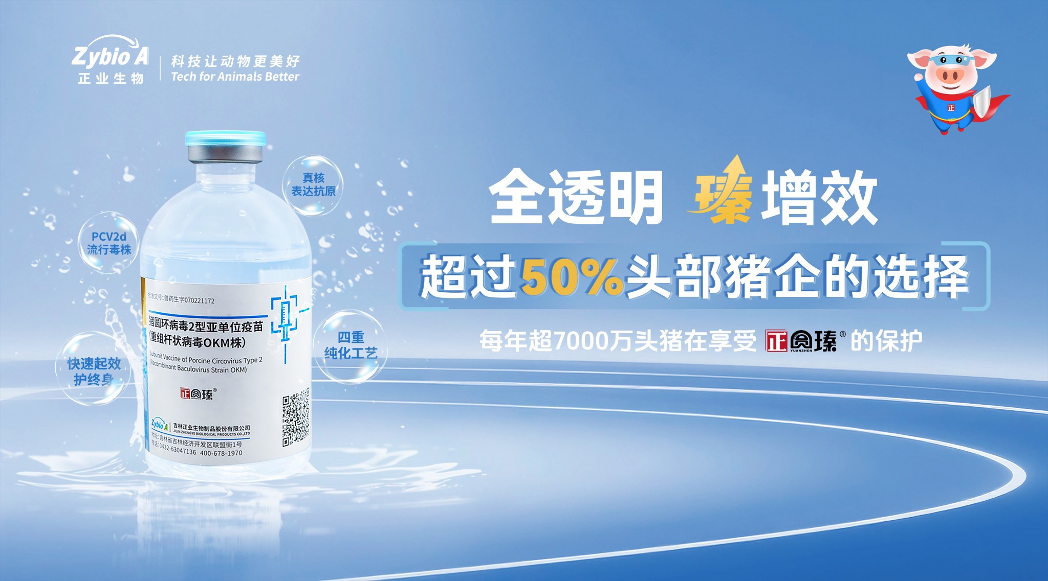 面對(duì)高致病性PCV2d的挑戰(zhàn),選擇大于努力!基于不同感染壓力,正業(yè)生物提供因地制宜的防控方案,遵循“靈活調(diào)整、母仔同免,全面防控,全程保護(hù)”的原則,配合正圓瑧-豬圓環(huán)病毒2型亞單位疫苗(重組桿狀病毒OKM株),正業(yè)生物五十余年精研科技、精益生產(chǎn)的創(chuàng)新性大單品,真核表達(dá)的cap蛋白有更好的免疫原性和中和抗體水平,顯著降低組織中病毒載量,提高生長(zhǎng)性能,為豬場(chǎng)提質(zhì)增效提供關(guān)鍵支撐。