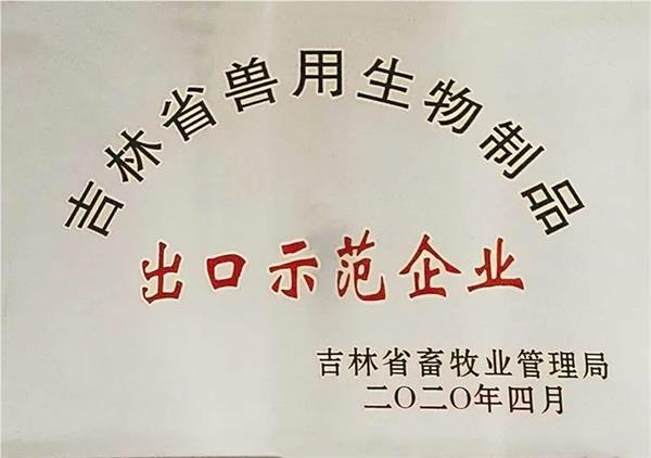 2017年新建細胞懸浮培養和基因工程疫苗新生產車間,6條生產線已經全部通過GMP驗收。公司多個禽苗產品已經正式出口埃及和巴基斯坦等國家,2020年4月獲頒“吉林省獸用生物制品出口示范企業”榮譽稱號。