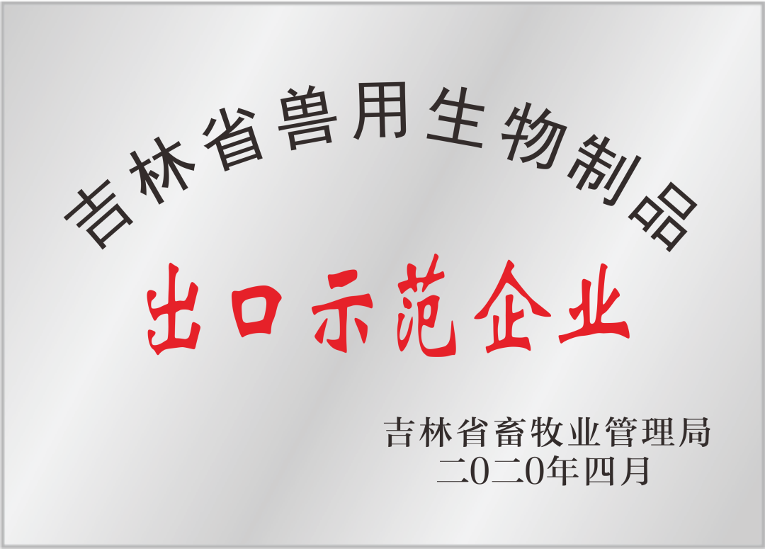 公司現有多個畜禽疫苗產品已經成功出口埃及、巴基斯坦和越南等國家,是吉林省首家動物疫苗出口企業,2020年4月獲頒“吉林省獸用生物制品出口示范企業”榮譽稱號。公司先后被國內多家集團養殖企業授予“AAAAA級供應商”與“年度優秀供應商”等榮譽。