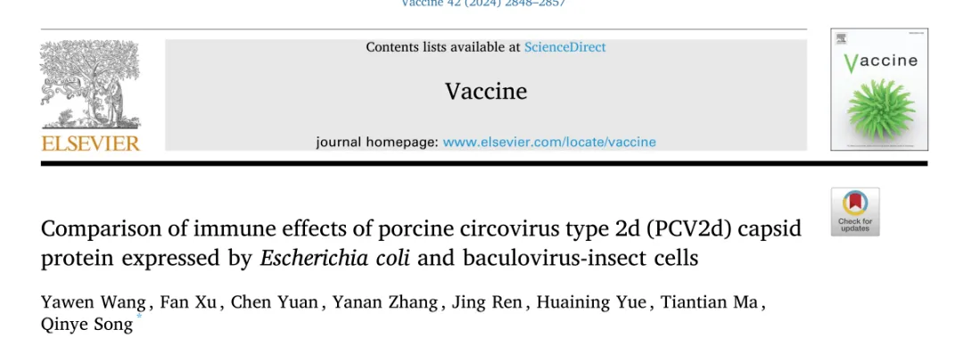2024年03月18日,河北農(nóng)業(yè)大學(xué)動物醫(yī)學(xué)院宋勤葉教授團(tuán)隊在Vaccine上發(fā)表題為“Comparison of immune effects of porcine circovirus type 2d (PCV2d) capsid protein expressed by Escherichia coli and baculovirus-insect cells”的最新研究論文, 本研究旨在比較大腸桿菌和桿狀病毒-昆蟲細(xì)胞表達(dá)系統(tǒng)產(chǎn)生的PCV2d衣殼蛋白(Cap蛋白)的免疫效果,以期為降低疫苗生產(chǎn)成本和保證疫苗質(zhì)量提供科學(xué)依據(jù)。